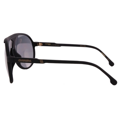 These Carrera CA Champion65/N 003_JO unisex aviator sunglasses, feature a matte black plastic frame and gold mirror lenses. Size and dimensions for the Carrera model CA Champion65/N are lens 62mm x bridge 12mm x temple 130mm. This frame will come with Carrera case, cloth and paperwork.