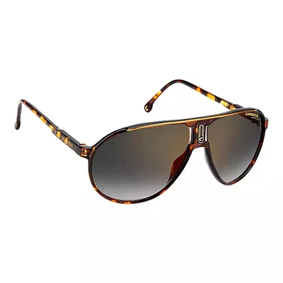 These Carrera CA Champion65/N WR9_FQ unisex aviator sunglasses, feature a brown havana plastic frame and grey lenses. Size and dimensions for the Carrera model CA Champion65/N are lens 62mm x bridge 12mm x temple 130mm. This frame will come with Carrera case, cloth and paperwork.