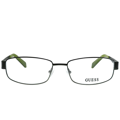 These Guess GU 1769 OL unisex rectangle eyeglasses, feature a olive metal frame and demoes. Size and dimensions for the Guess model GU 1769 are lens 54mm x bridge 16mm x temple 140mm. This frame will come with Guess case, cloth and paperwork, and they can be fitted with your prescription by your eye doctor.