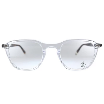 These Original Penguin The Manny CR unisex square eyeglasses, feature a crystal plastic frame and 0es. Size and dimensions for the Original Penguin model The Manny are lens 47mm x bridge 23mm x temple 140mm. This frame will come with Original Penguin case, cloth and paperwork, and they can be fitted with your prescription by your eye doctor.