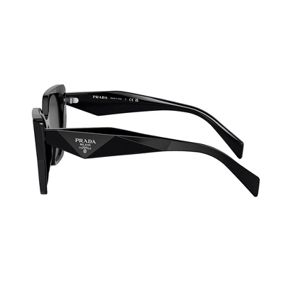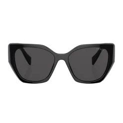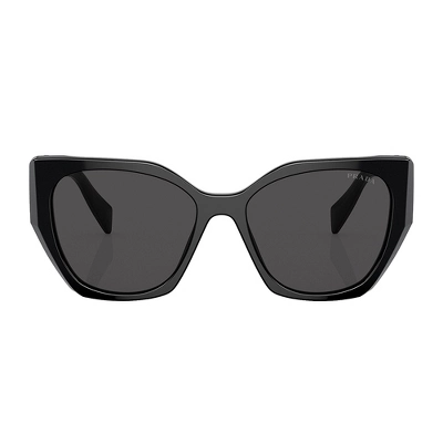 These Prada PR 19ZS 1AB5S0 womens butterfly sunglasses, feature a black plastic frame and grey lenses. Size and dimensions for the Prada model PR 19ZS are lens 55mm x bridge 17mm x temple 145mm. This frame will come with Prada box, case, cloth and paperwork, and they can be fitted with your prescription by your eye doctor.