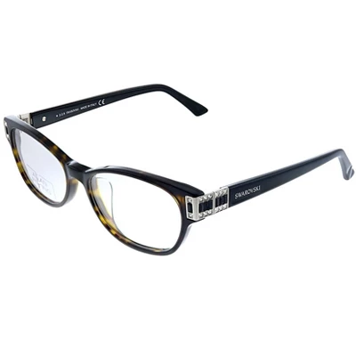 These Swarovski 052 womens square eyeglasses, feature a havana plastic frame and demoes. Size and dimensions for the Swarovski model are lens 56mm x bridge 16mm x temple 140mm. This frame will come with Swarovski case, cloth and paperwork, and they can be fitted with your prescription by your eye doctor.