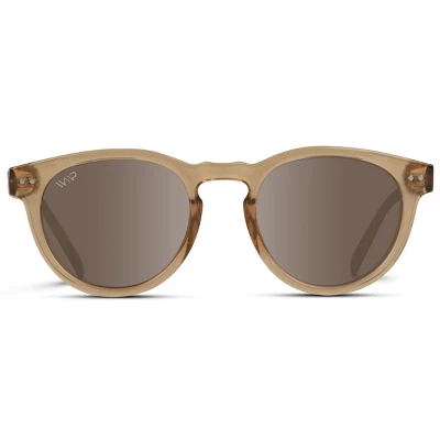 Round sunglass lovers, meet your new go to shades. With its thick yet lightweight acetate frame and chic circular shape, this pair of sunglasses is the perfect complement to any look. Available in unique color combos like crystal brown and blue along with timeless all black. Polarized lenses with 100% UV protection will keep you looking sharp.