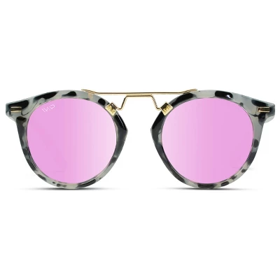 These circular-shaped sunnies offer effortless charm and endless compliments thanks to their distinct double bridge design. Sleek stainless steel accents and attention-commanding color combos add to their retro-inspired wow factor. Choose from four timeless tortoiseshell frame options paired with solid or mirrored polarized lenses complete with 100% UVA/UVB protection.