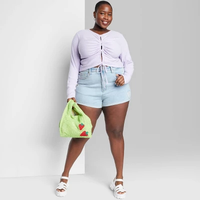 Super-high rise jean shorts from Wild Fable™ made from cotton denim fabric with a hint of spandex for stretch. Details include front, back and coin pockets, as well as rolled cuffs and belt loops.